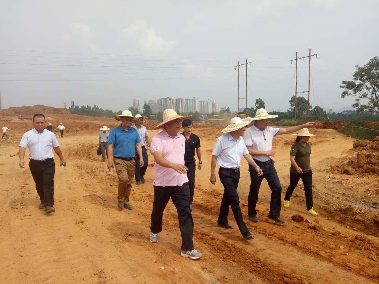 8月1日下午16时,红河小镇项目工地上,艳阳高照,机械轰鸣,随着中巴车缓缓驶入项目工地,由来宾市市长雷应敏、市人民政府副秘书长张桂延以及市发改委、市国土资源局等部门主要领导组成的调研组莅临工地现场视察。我集团董事长邓亚保及公司相关领导在项目现场进行接待。