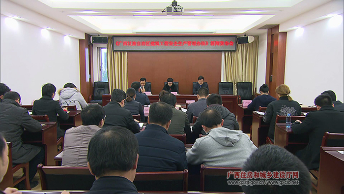 2月7日,自治区法制办公室、自治区住房城乡建设厅在南宁召开《广西壮族自治区建筑工程安全生产管理办法》(以下简称《办法》)新闻发布会。新出台的《办法》将于2018年3月1日起施行。自治区法制办公室副主任潘东、自治区住房城乡建设厅副厅长杨绿峰、副巡视员莫兰新出席发布会并讲话。
