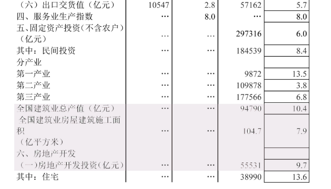 房屋新开工面积95817万平方米,增长11.8%,增速提高1个百分点。其中,住宅新开工面积70611万平方米,增长15.0%。房屋竣工面积37131万平方米,下降10.6%,降幅扩大0.5个百分点。其中,住宅竣工面积25962万平方米,下降12.8%