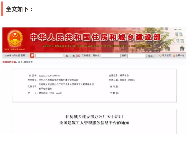 全国建筑工人管理服务信息平台即将启用