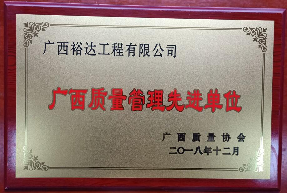 2018年度广西质量管理先进单位