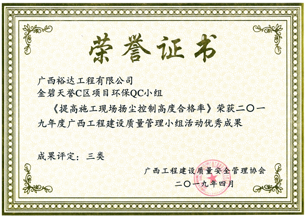 2019年度广西工程建设质量管理小组活动优秀成果《提高主体结构施工中混凝土楼梯尺寸偏差合格率》