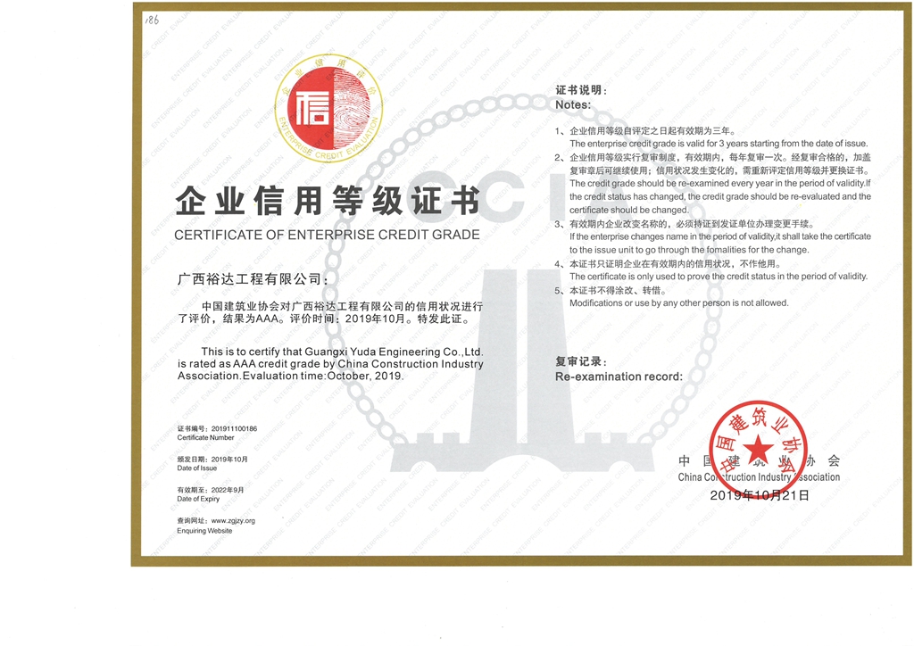 2019年广西建设工程优质结构奖(裕达.翰林府5#-7#楼及地下室建设项目)